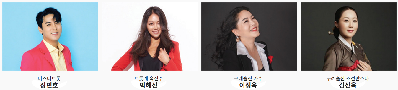 ☞ 출연진 : 미스터트롯 장민호, 박혜신, 이정옥, 김산옥