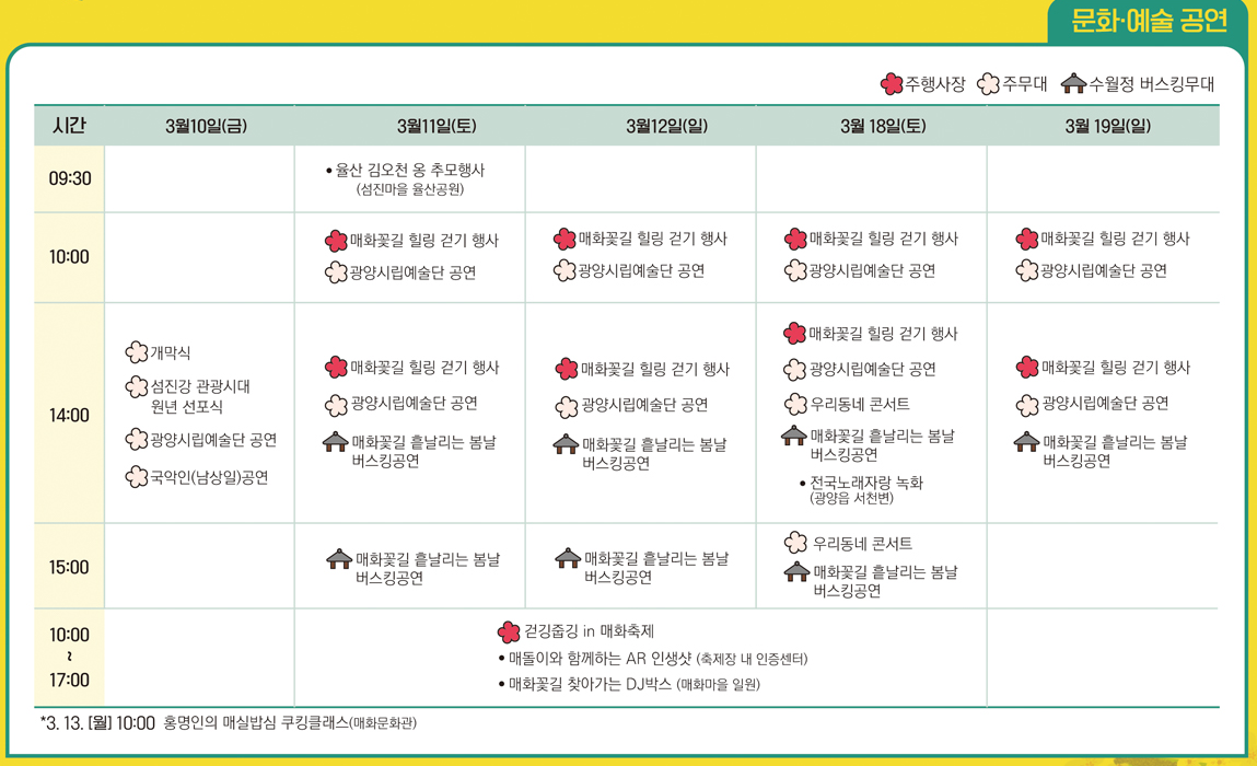 ○ 축제장소 : 전라남도 광양시 다압면 매화마을 일원(광양시 전역 행사)